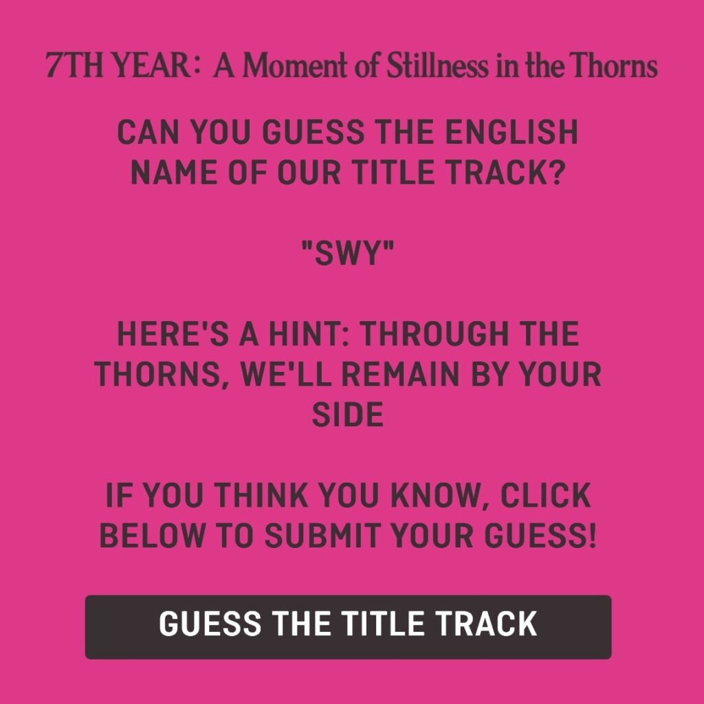 - 韓国語アルバム名:7TH YEAR: 가시덤불에 잠시 바람이 멈췄을 때