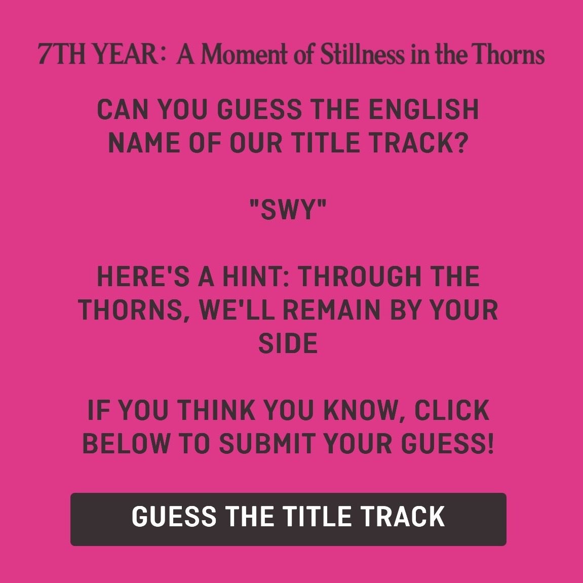 直訳:7TH YEAR: 棘の茂みで風が一瞬止まった時- 『7TH YEAR』はチームのこれまでの時間