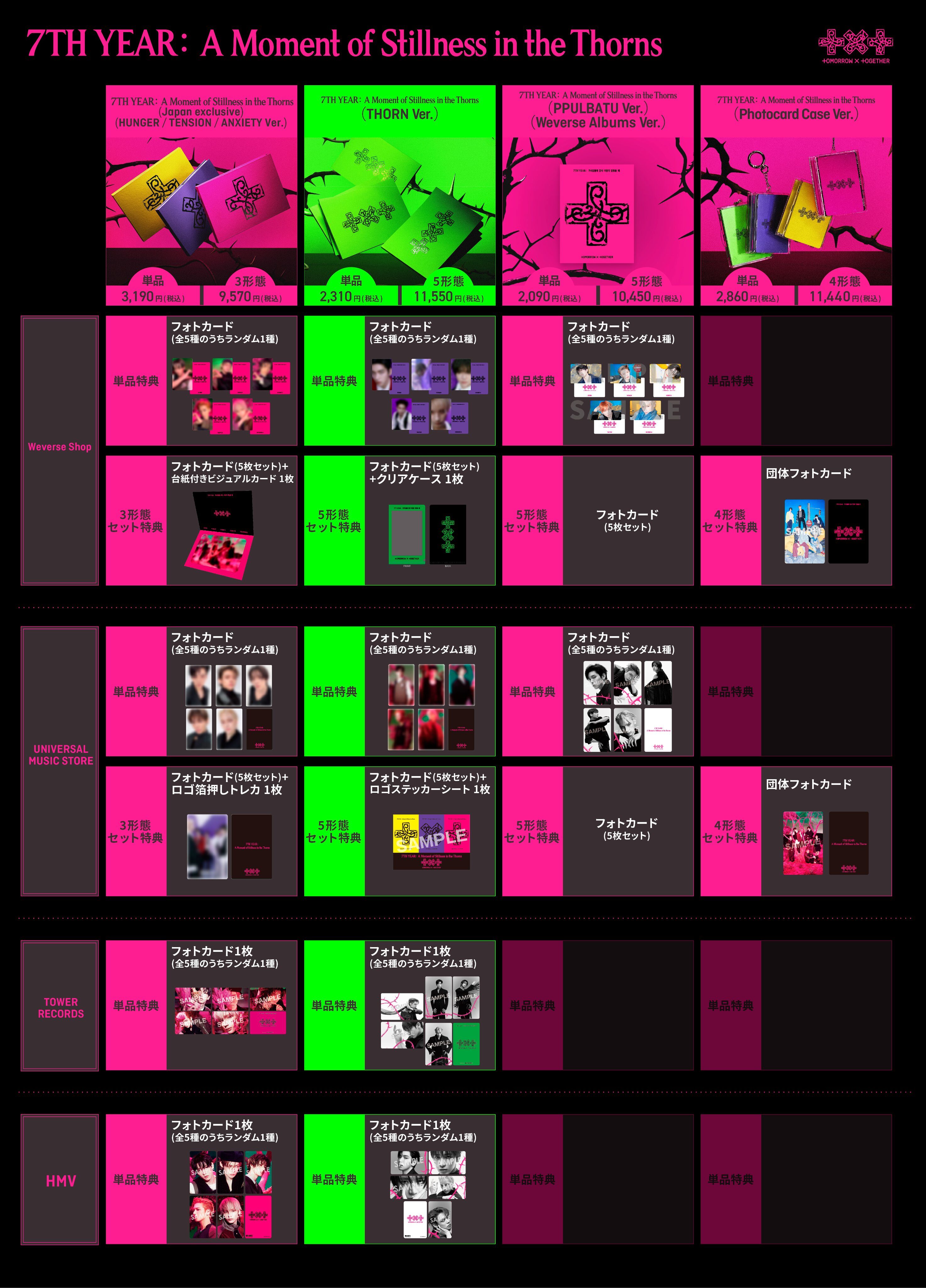 商品と特典一覧まとめはこちら!#TXT#7TH_YEAR#가시덤불에_잠시_바람이_멈췄을_때#A_Moment_of_Stillness_in_the_Thorns pic.twitter.com/zKuPf3N5jP